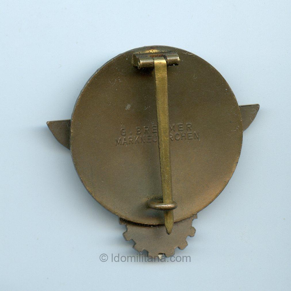 Tombak based HJ Reichsberufswetkampf Kreissieger 1938 – Gustav Brehmer, Markneukirchen. 1938 example that remains in worn but good condition. Micro hairline cracks in the enamel that are barely visable.