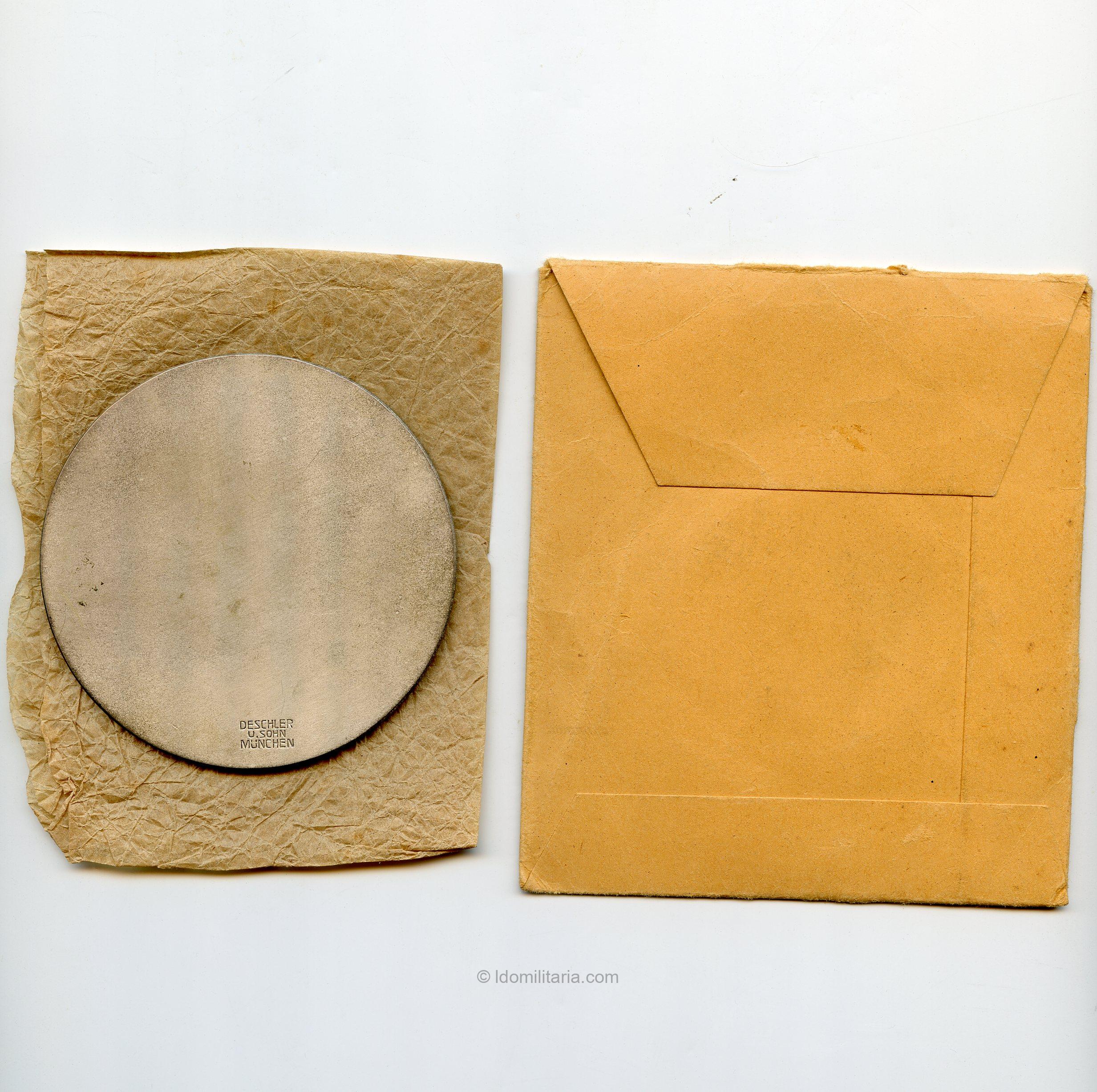 Hochland lager 1934 Plaque with extremely rare Deschler packet. Buntmetal based table medal for the Hochland lager 1934. In my 10 years collecting HJ this is the only example i have seen with the original factory packet. Premium set for the HJ Collector!